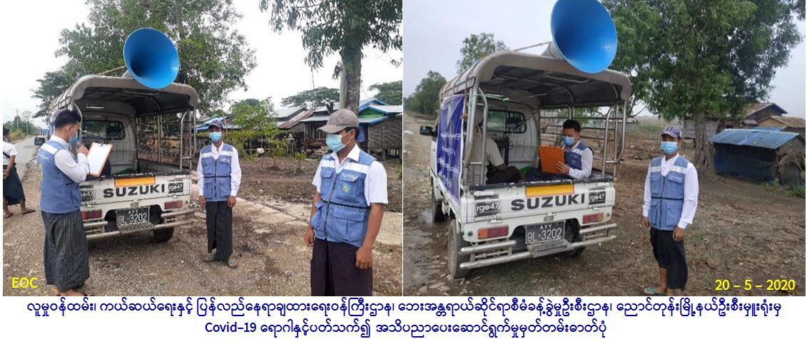 လူမှုဝန်ထမ်း၊ ကယ်ဆယ်ရေးနှင့် ပြန်လည်နေရာချထားရေး ဝန်ကြီးဌာန၊ ဘေးအန္တရာယ်ဆိုင်ရာစီမံခန့်ခွဲမှုဦးစီးဌာန၊ ညောင်တုန်း မြို့နယ်ဦးစီးမှူးရုံးမှ တာဝန်ရှိသူများသည် (၂၀.၅.၂၀၂၀) ရက်နေ့တွင် ညောင်တုန်းမြို့နယ်၊ ငှက်ပျောကျွန်းကျေးရွာ အုပ်စု အတွင်းရှိ ကျေးရွာ (၈) ရွာ၌ Covid-19 ကာကွယ်၊ တားဆီး၊ ထိန်းချုပ်၊ ကုသရေးဆိုင်ရာ ပြည်သူအသိပညာပေး အသံဖိုင်အား ဖွင့်လှစ်၍ အသိပညာပေးခြင်း၊ လှည့်လည်ဟောပြောခြင်းများ ဆောင်ရွက်ခဲ့ပါကြောင်း သတင်းရရှိပါသည်။