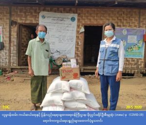 လူမှုဝန်ထမ်း၊ ကယ်ဆယ်ရေးနှင့် ပြန်လည်နေရာချထားရေးဝန်ကြီးဌာန၊ ဘေးအန္တရာယ်ဆိုင်ရာ စီမံခန့်မှုဦးစီးဌာန၊ မိုးညှင်းခရိုင်ဦးစီးမှူးရုံးမှ တာဝန်ရှိသူများသည် (၂၀-၅-၂၀၂၀) ရက်နေ့တွင် မိုးကောင်းမြို့နယ်၊ မိုးကောင်းနှစ်ခြင်းကျွန်းတော (IDPs) စခန်းမှ အိမ်ထောင်စု (၁၃) စု၊ လူဦးရေ (၇၂) ဦးတို့အတွက် ဆပ်ပြာ (၇၂) ခဲ၊ ထုံး (၁၀) အိတ်နှင့် အပူချိန်တိုင်းကိရိယာ (၁) ခုတို့အား သွားရောက်ထောက်ပံ့ပေးခဲ့ပါကြောင်း သတင်းရရှိပါသည်။