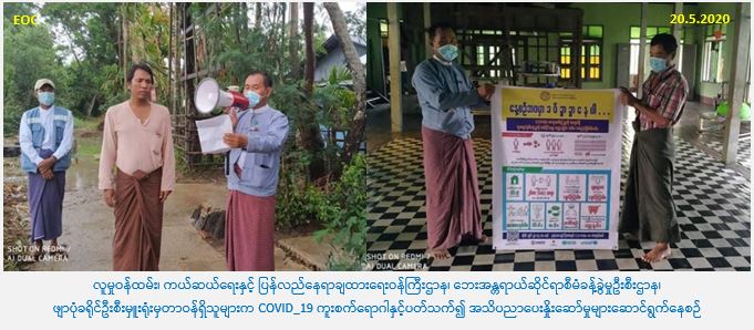 လူမှုဝန်ထမ်း၊ ကယ်ဆယ်ရေးနှင့် ပြန်လည်နေရာချထားရေးဝန်ကြီးဌာန၊ ဘေးအန္တရာယ်ဆိုင်ရာစီမံခန့်ခွဲမှုဦးစီးဌာန၊ ဖျာပုံခရိုင်ဦးစီးမှူးရုံးမှ တာဝန်ရှိသူများသည် (၂၀-၅-၂၀၂၀)ရက်နေ့ နံနက်(၁၀:၃၀) အချိန်မှ ညနေ(၁၅:၃၀)အချိန်အထိ COVID-19 ရောဂါကူးစက်ပြန့်နှံ့မှုများ မဖြစ်ပွားစေရန်အတွက် သိရှိလိုက်နာဆောင်ရွက်ရမည့် အချက်များနှင့်ပတ်သက်၍ အသိပညာပေးခြင်းကို ဒေးဒရဲမြို့နယ်၊ သောကြာကျေးရွာအုပ်စု၊ သောကြာကျေးရွာရှိ ပြည်သူများသို့ ထိရောက်စွာလိုက်လံအသိပေးနှိုးဆော်ခဲ့ပြီး အသိပညာပေးဗီနိုင်းများကိုလည်းပေးအပ်ခဲ့ပါကြောင်း သတင်းရရှိပါသည်။