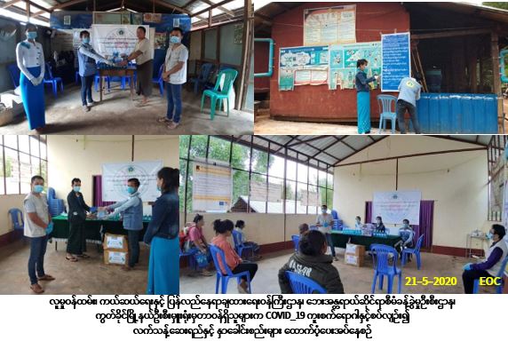 လူမှုဝန်ထမ်း၊ ကယ်ဆယ်ရေးနှင့် ပြန်လည်နေရာချထားရေးဝန်ကြီးဌာန၊ ဘေးအန္တရာယ်ဆိုင်ရာစီမံခန့်ခွဲမှုဉီးစီးဌာန၊ ကွတ်ခိုင်မြို့နယ်ဦးစီးမှူးရုံးမှတာဝန်ရှိသူများသည် (၂၁-၅-၂၀၂၀) ရက်နေ့တွင် လူမှုဝန်ထမ်းဦးစီးဌာန၊ မြန်မာ့နှလုံးသားလူမှုဖွံ့ဖြိုးမှုအဖွဲ့(MHDO) တို့နှင့်ပူးပေါင်း၍ COVID-19 ကူးစက်ရောဂါနှင့်စပ်လျဉ်း၍ ကွတ်ခိုင် မြို့နယ်အတွင်း IDP(camps) မုံးစီးကာသိုလိပ်ဘုရားကျောင်းရှိ အိမ်ထောင်စု (၂၃)စု၊ လူဦးရေ (၁၅၇)ဦး၊ မုံးစီးပန်ယန်ခါးရှိ အိမ်ထောင်စု(၄၅)စု၊ လူဦးရေ (၃၁၉)ဦးတို့အတွက် (၁)ဦးလျှင် အဝတ်နှာခေါင်းစည်း (၂)ခုနှုန်းစီ၊ အိမ်ထောင်စု(၁)စုလျှင် ရေမလိုလက်သန့်ဆေးရည် (၂)ဘူးနှုန်းစီ စုစုပေါင်းအဝတ်နှာခေါင်းစည်း (၉၅၂)ခု၊ ရေမလိုလက်သန့်ဆေးရည် (၁၃၆)ဘူးတို့ကို ထောက်ပံ့ပေးခဲ့ပြီး အဝတ်နှာခေါင်းစည်းအား စနစ်တကျအသုံးပြုနည်း ဗီနိုင်းပိုစတာကပ်ခြင်းတို့ ဆောင်ရွက်ခဲ့ပါကြောင်း သတင်းရရှိပါသည်။