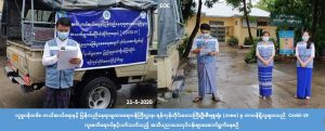 (၂၁-၅-၂၀၂၀) ရက်နေ့တွင် လူမှုဝန်ထမ်း၊ ကယ်ဆယ်ရေးနှင့် ပြန်လည်နေရာချထားရေးဝန်ကြီးဌာန၊ ဘေးအန္တရာယ်ဆိုင်ရာစီမံခန့်ခွဲမှုဦးစီးဌာန၊ ရန်ကုန်တိုင်းဒေသကြီးဦးစီးမှူးရုံးမှ အရာထမ်း၊ အမှုထမ်းများ သည် ရန်ကုန်အရှေ့ပိုင်းခရိုင်၊ မြောက်ဥက္ကလာပမြို့နယ်၊ အမှတ်(၁/၂/) ရပ်ကွက်၊ (က/ခ/ဂ/ဃ/စ) ရပ်ကွက်တို့တွင် (Covid-19)အသက်ရှူလမ်းကြောင်းဆိုင်ရာရောဂါနှင့်ပတ်သက်၍ အများပြည်သူများ သိရှိလိုက်နာနိုင်ရန် ကျန်းမာရေးနှင့်အားကစားဝန်ကြီးဌာနမှ ထုတ်ပြန်ထားသောအသိပေးကြေငြာချက် များအား ရပ်ကွက်များအတွင်း အသိပေးကြော်ငြာခြင်းများ ပြုလုပ်ခဲ့ကြောင်း သိရှိရပါသည်။