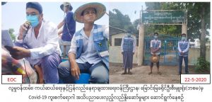 လူမှုဝန်ထမ်း၊ ကယ်ဆယ်ရေးနှင့်ပြန်လည်နေရာချထားရေးဝန်ကြီးဌာန၊ ဘေးအန္တရာယ်ဆိုင်ရာစီမံခန့်ခွဲမှုဦးစီးဌာန၊ မြောင်းမြခရိုင်ဦးစီးမှူးရုံးမှ တာဝန်ရှိသူများသည် (၂၂-၅-၂၀၂၀)ရက်နေ့ နံနက်(၀၇:၃၀)နာရီအချိန်မှစ၍ နေ့လည်(၀၂:၀၀)နာရီအထိ မြောင်းမြခရိုင်၊မြောင်းမြမြို့နယ်ရှိ တပင်ချောင်း၊ ကွမ်းသီးချောင်းကျေးရွာ၊ ချမ်းသာကုန်းကျေးရွာ၊ သံဃာကုန်းကျေးရွာ၊ ကဝက်ကျေးရွာ၊ လင်းဒိုင်းဒေါင့်ကြီးကျေးရွာ၊ ကွင်းပေါက်ကြီးကျေးရွာ၊ ကျွန်းဒိတ်ကျေးရွာ၊ မုဆိုးမကျေးရွာ၊ ကြက်ခိုးစုကျေးရွာ၊ သပြေမြိုင်ကျေးရွာ၊ ပိတောက်ချောင်းကျေးရွာ၊ လေးကြီးကျေးရွာ၊ ဓါးမြချောင်းကျေးရွာ၊ ငါးတန်တရာကျေးရွာ၊ ညောင်တောစု ကျေးရွာ၊ ဝဲချောင်းကျေးရွာ၊ နတ်စင်ချောင်းကျေးရွာနှင့် ရန်မနိုင်ကျေးရွာတို့တွင် လတ်တလော နိုင်ငံအသီးသီးတွင် ကူးဆက်ပြန့်ပွားလျက်ရှိသော COVID-19 ကူးစက်ရောဂါနှင့် ပတ်သက်ပြီး ဆောင်ရန်/ရှောင်ရန်များကို ကျေးရွာနေပြည်သူ လူထုအား အသိပညာပေးလှည့်လည်ဟောပြောမှုများ ဆောင်ရွက်ခဲ့ကြောင်း သတင်းရရှိပါသည်။