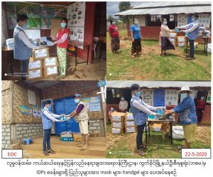 လူမှုဝန်ထမ်း၊ ကယ်ဆယ်ရေးနှင့်ပြန်လည်နေရာချထားရေးဝန်ကြီးဌာန၊ ဘေးအန္တရာယ်ဆိုင်ရာစီမံခန့်ခွဲမှုဦးစီးဌာန၊ ကွတ်ခိုင် မြို့နယ်ဦးစီးမှူးရုံးမှ တာဝန်ရှိသူများသည် (၂၂.၅. ၂၀၂၀) ရက်နေ့တွင် ကွတ်ခိုင်မြို့နယ်အတွင်း IDP(camps) (၃)ရပ်ကွက်ကာသိုလိပ်ဘုရားကျောင်း အိမ်ထောင်စု (၃၀)၊ လူဦးရေ(၁၃၈)၊ ကာလိုင်(၁) အိမ်ထောင်စု(၈၄)၊ လူဦးရေ(၄၉၆)၊ ကာလိုင်(၂) အိမ်ထောင်စု (၁၇၅)၊လူဦးရေ(၁၁၀၅)၊ စုစုပေါင်းအိမ်ထောင်စု(၂၈၉)၊ လူဦးရေ(၁၇၃၉) တို့အတွက်လူတစ်ဦးလျှင် အဝတ်masks(၂)ခု နှုန်း၊ အိမ်ထောင်စုတစ်စုလျှင် ရေမလိုလက်သန့်ဆေးရေ(Hand Gel) (၂)ဗူးနှုန်းဖြင့် စုစုပေါင်း အဝတ်masks(၃၄၇၈)ခု၊ ရေမလိုလက်သန့်ဆေးရေ(Hand Gel) (၅၇၈)ဗူးတို့ကို ထောက်ပံ့ပေးခဲ့ပြီး အဝတ်masksနှင့် ပက်သက်၍ စနစ်တကျအသုံးပြုနည်းဗီနိုင်းပိုစတာ ကပ်ပေးခြင်းတို့ကို ဆောင်ရွက်ပေးခဲ့ကြောင်း သတင်းရရှိပါသည်။