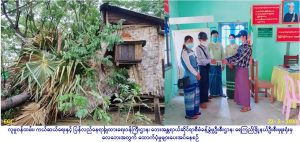 လူမှုဝန်ထမ်း၊ ကယ်ဆယ်ရေးနှင့် ပြန်လည်နေရာချထားရေး ဝန်ကြီးဌာန၊ ဘေးအန္တရာယ်ဆိုင်ရာစီမံခန့်ခွဲမှုဦးစီးဌာန၊ ရေကြည် မြို့နယ်ဦးစီးမှူးရုံးမှ တာဝန်ရှိသူများသည် ရေကြည်မြို့နယ်၊ ငါသိုင်းချောင်းမြို့၊ ဒေါင့်ကြီးဘက်ကျေးရွာအုပ်စု၊ သောင်ဖျားပိုင်း ကျေးရွာတွင် (၂၁.၅.၂၀၂၀)ရက်နေ့တွင် ဖြစ်ပွားခဲ့သော လေဘေးကြောင့် အမိုးလန်ပျက်စီးနေအိမ် (၁)လုံးအတွက် အိမ်ဆောက် ပစ္စည်းဖိုးရန်ပုံငွေ (၅၀၀၀ဝ/-)၊ လူဦးရေ (၃)ဦးအတွက် ဆန်ရိက္ခာ (၇)ရက်စာရန်ပုံငွေ (၆၃၀ဝ/-)ကျပ်၊ စုစုပေါင်းရန်ပုံငွေ (၅၆၃၀ဝ/-) ကျပ်အား (၂၂.၅.၂၀၂၀) ရက်နေ့ (၁၁:၃၀)နာရီအချိန် တွင် ဘေးသင့်ပြည်သူများ လက်ဝယ်အရောက် ထောက်ပံ့ပေးခဲ့ပါကြောင်း သတင်းရရှိပါသည်။