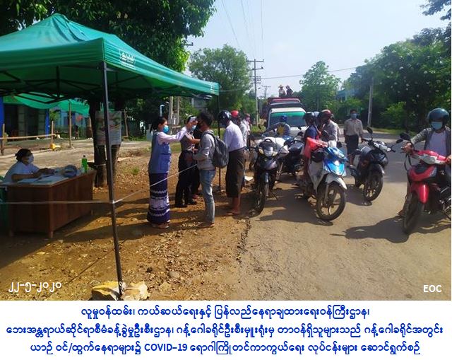 လူမှုဝန်ထမ်း၊ ကယ်ဆယ်ရေးနှင့် ပြန်လည်နေရာချထားရေးဝန်ကြီးဌာန၊ ဘေးအန္တရာယ်ဆိုင်ရာစီမံခန့်ခွဲမှုဦးစီးဌာန၊ ဂန့်ဂေါခရိုင်ဦးစီးမှူးရုံးမှ တာဝန်ရှိသူများသည် မြို့နယ်အထွေထွေအုပ်ချုပ်ရေးဦးစီးဌာနနှင့် ဌာနဆိုင်ရာများမှ တာဝန်ရှိသူများနှင့်ပူးပေါင်း၍ (၂၂-၅-၂၀၂၀) ရက်နေ့၊ (ဝ၈:၃၀) နာရီမှ (၁၇:၃၀) နာရီအချိန်ထိ COVID-19 ရောဂါကြိုတင်ကာကွယ်ရေးအတွက် ဂန့်ဂေါခရိုင်အတွင်း ယာဉ် ဝင်/ထွက်နေရာများ၌ ယာဉ်များဖြင့် စီးနင်းလိုက်ပါလာသော ခရီးသည်များအား ကိုယ်အပူချိန်တိုင်းထွာပေးခြင်းနှင့် ပြည်တွင်း/ပမှ ပြန်လာသူများအား စာရင်းပြုစုခြင်းတို့ကို ဆောင်ရွက်ခဲ့ကြောင်း သတင်းရရှိပါသည်။