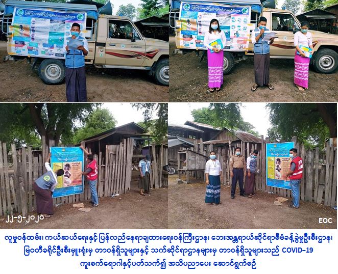 လူမှုဝန်ထမ်း၊ ကယ်ဆယ်ရေးနှင့် ပြန်လည်နေရာချထားရေးဝန်ကြီးဌာန၊ ဘေးအန္တရာယ်ဆိုင်ရာစီမံခန့်ခွဲမှုဦးစီးဌာန၊ မြဝတီခရိုင်ဦးစီးမှူးရုံးမှ တာဝန်ရှိသူများသည် (၂၂-၅-၂၀၂၀) ရက်နေ့တွင် ပြန်လည်ထူထောင်ရေးဦးစီးဌာန၊ ပြန်ကြားရေးနှင့် ပြန်သူ့ဆက်ဆံရေးဦးစီးဌာန၊ မြန်မာနိုင်ငံကြက်ခြေနီအသင်းတို့နှင့်ပူးပေါင်း၍ မြဝတီမြို့အတွင်းရှိ မယ်ထော်သလေးကျေးရွာ၊ ထီးမယ်ဝါးခီးကျေးရွာ၊ မင်းလက်ပံကျေးရွာ၊ ဖလူးကြီးကျေးရွာနှင့် ဖလူးလေးကျေးရွာတို့၌ Covid-19 ကူးစက်ရောဂါနှင့်ပတ်သက်၍ အများပြည်သူများ သိရှိလိုက်နာရန်အချက်များအား အသိပညာပေးဆောင်ရွက်ခဲ့ကြောင်း သတင်းရရှိပါသည်။