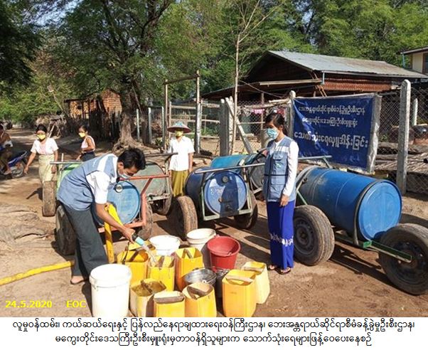 လူမှုဝန်ထမ်း၊ ကယ်ဆယ်ရေးနှင့် ပြန်လည်နေရာချထားရေးဝန်ကြီးဌာန၊ ဘေးအန္တရာယ်ဆိုင်ရာစီမံခန့်ခွဲမှုဦးစီး ဌာန၊ မကွေးတိုင်းဒေသကြီးဦးစီးမှူးရုံးမှတာဝန်ရှိသူများသည် မကွေးမြို့နယ်၊ ကြာကန်ကျေးရွာအုပ်စု၊ ကြာကန်ကျေးရွာ(အရှေ့ပိုင်း၊ ရွာလယ်ပိုင်း၊ တောင်ပိုင်း)ရှိ အိမ်ခြေ (၁၁၅) လုံး၊ အိမ်ထောင် စု(၁၂၃) စုမှ လူဦးရေ (၅၁၉) ဦးတို့အတွက် သောက်သုံးရေဂါလံ (၆၀၀၀) ကို (၂၄-၅-၂၀၂၀) ရက်နေ့၊ (၁၁:၀၀) နာရီအချိန်တွင် သွားရောက်ဖြန့်ဝေပေးခဲ့ပါကြောင်း သတင်းရရှိပါသည်။