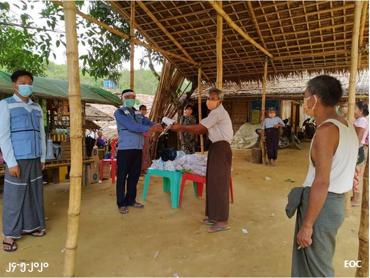 အလားတူ ရခိုင်ပြည်နယ်၊ ဘူးသီးတောင်မြို့နယ်ရှိ ရွှေသီး၊ ငဖရုံ၊ ဝါးနက်ရုံ၊ ဒုံးသိမ်ဓမ္မာရုံ၊ လမ်းမကျောင်း၊ ရန်အောင်မြေ၊ မြတောင်ဘုန်းကြီးကျောင်း၊ ဂန္ဓာရီပရဟိတကျောင်း၊ မြောင်းနားတိုက်ပွဲရှောင်စခန်း၊ စုစုပေါင်းတိုက်ပွဲရှောင်စခန်း(၉)ခုသို့ သွားရောက်၍ အဝတ် Mask (၁၁၅၁၂)ခု၊ Hand Speaker (၅)ခုနှင့် COVID-19 အသိပညာပေးအသံဖိုင် ထည့်သွင်းထားသော Memory Stick (၅)ခုတို့အား ထောက်ပံ့ခဲ့ပါသည်။