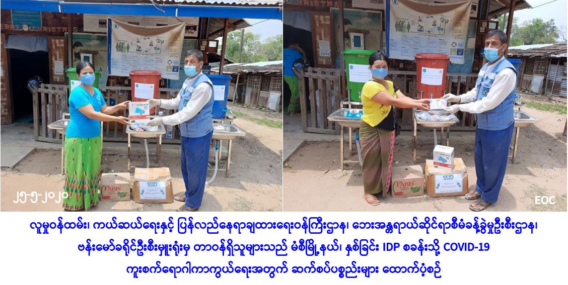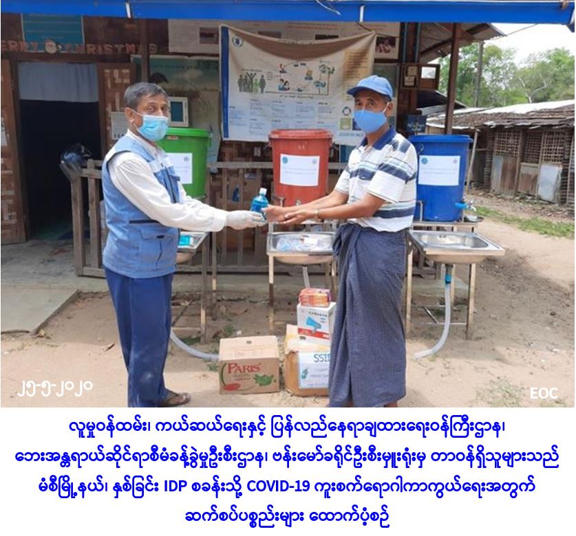 လူမှုဝန်ထမ်း၊ ကယ်ဆယ်ရေးနှင့် ပြန်လည်နေရာချထားရေးဝန်ကြီးဌာန၊ ဘေးအန္တရာယ်ဆိုင်ရာ စီမံခန့်ခွဲမှုဦးစီးဌာန၊ ဗန်းမော်ခရိုင်ဦးစီးမှူးရုံးမှ တာဝန်ရှိသူများသည် (၂၅-၅-၂၀၂၀) ရက်နေ့တွင် မံစီမြို့နယ်၊ နှစ်ခြင်း IDP စခန်းရှိ အိမ်ထောင်စု (၁၇၇)စု၊ လူဦးရေ(၇၈၃)ဦးတို့အတွက် Hand Speaker (၁) ခု၊ Memory Stick (၁) ခု၊ အပူချိန်တိုင်းကိရိယာ (၁) ခု၊ ဘေစင် (၃) စုံ၊ ထုံး (၁၀) အိတ်၊ ဆပ်ပြာ (၇၈၃) ခဲ၊ လက်သန့်ဆေးရည် (၃၅၄) ဗူး၊ အ၀တ် mask (၁၅၆၆) ခုတို့အား သွားရောက်ထောက်ပံ့ခဲ့ကြောင်း သတင်းရရှိပါသည်။