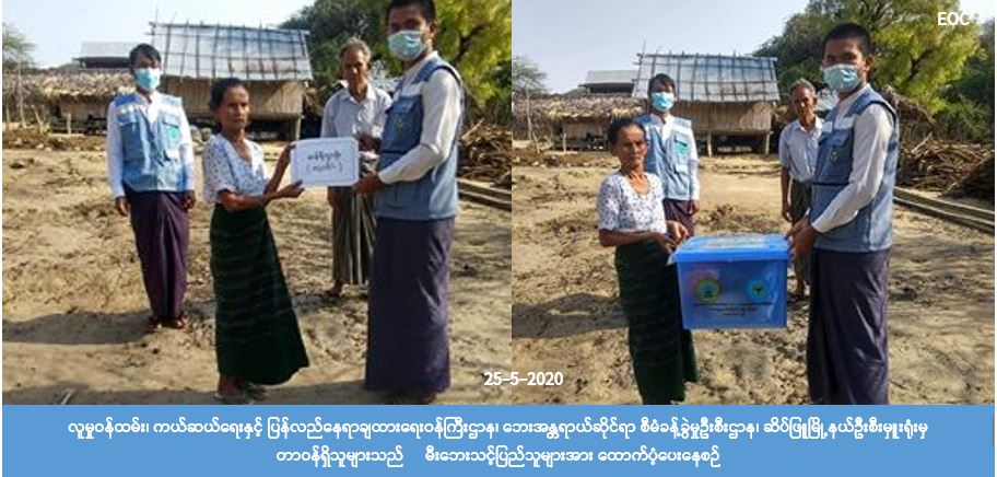 လူမှုဝန်ထမ်း၊ ကယ်ဆယ်ရေးနှင့် ပြန်လည်နေရာချထားရေးဝန်ကြီးဌာန၊ ဘေးအန္တရာယ်ဆိုင်ရာ စီမံခန့်ခွဲမှု ဦးစီးဌာန၊ မကွေးတိုင်းဒေသကြီး၊ ပခုက္ကူခရိုင်၊ ဆိပ်ဖြူမြို့နယ်ဦးစီးမှူးရုံးမှတာဝန်ရှိသူများသည် ဆိပ်ဖြူ မြို့နယ်၊ ထမ္မကောက်ကျေးရွာအုပ်စု၊ ဇီးတော်ပင်ကျေးရွာတွင်(၂၄-၅-၂၀၂၀)ရက်နေ့(၁၂:၁၅) အချိန်၌ နေအိမ်ထရံရှိ မီးဖိုချောင်တွင်ထိုးထားသော ဂတ်စ်မီးခြစ် အပူချိန်လွန်ကဲပြီး ပေါက်ကွဲရာမှ တဆင့် မီးလောင်ကျွမ်းခဲ့ရာ မီးဘေးကြောင့်ပျက်စီးအိမ်ခြေ (၁) လုံး၊ အိမ်ထောင်စု(၁)စု၊ လူဦးရေ (၄) ဦး တို့ အတွက် ဆန်ရိက္ခာဖိုး (၇) ရက်စာ(၈,၄၀၀/-) ကျပ်၊ အိမ်ဆောက်ပစ္စည်းဖိုး (၁၀၀,၀၀၀/-) ကျပ်၊ စုစုပေါင်း (၁၀၈,၄၀၀/-) ကျပ်နှင့် အိမ်ထောင်စု (၁)စုစာ ကယ်ဆယ်ရေးပစ္စည်း(၁၆)မျိုးတို့ကို ဇီးတော်ပင်ကျေးရွာ၌ (၂၅-၅-၂၀၂၀) ရက်နေ့တွင် မီးဘေးသင့်ပြည်သူများ လက်ဝယ်အရောက် ထောက်ပံပေးအပ်ခဲ့ကြောင်း သိရှိရပါသည်။