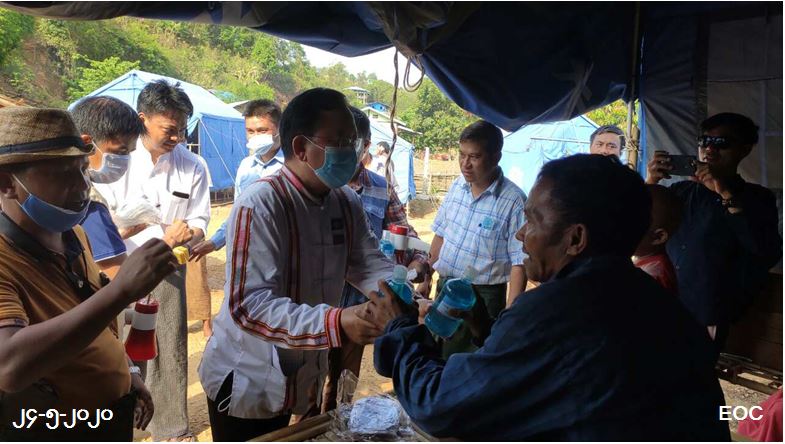 လူမှုဝန်ထမ်း၊ ကယ်ဆယ်ရေးနှင့် ပြန်လည်နေရာချထားရေးဝန်ကြီးဌာနသည် IDP စခန်းများနှင့် တိုက်ပွဲရှောင်စခန်းများတွင်နေထိုင်ကြသည့် ပြည်တွင်းနေရပ်စွန့်ခွာသူများ အား COVID – 19 ရောဂါကူးစက်ပြန့်ပွားခြင်းမှ ကာကွယ်၊ ထိန်းချုပ်၊ တုံ့ပြန်ရေး လုပ်ငန်း များကို သက်ဆိုင်ရာဌာန၊ အဖွဲ့အစည်းများနှင့်ပူးပေါင်း၍ အကောင်အထည်ဖော် ဆောင်ရွက် လျက်ရှိပါသည်။