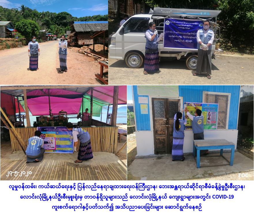 လူမှုဝန်ထမ်း၊ ကယ်ဆယ်ရေးနှင့် ပြန်လည်နေရာချထားရေးဝန်ကြီးဌာန၊ ဘေးအန္တရာယ်ဆိုင်ရာ စီမံခန့်ခွဲမှုဦးစီးဌာန၊ လောင်းလုံမြို့နယ်ဦးစီးမှူးရုံးမှ တာဝန်ရှိသူများသည် (၂၇-၅-၂၀၂၀) ရက်နေ့တွင် လောင်းလုံးမြို့နယ်အတွင်းရှိ ရဘဲကျေးရွာ၊ ကျောက်မတ္တပ်ကျေးရွာနှင့် ကြက်လွတ်ကျးရွာတို့၌ လော်စပီကာ၊ COVID-19 ကူးစက်ရောဂါနှင့်ပတ်သက်သည့် သိရှိလိုက်နာဆောင်ရွက်ရမည့် ဆောင်ရန် ရှောင်ရန်အချက်များအား Hand Speaker ဖြင့် လှည့်လည်အသိပညာပေးခြင်းနှင့် အသိပညာပေး ဗီနိုင်းပိုစတာများ ကပ်ခြင်းတို့ ဆောင်ရွက်ခဲ့ကြောင်း သတင်းရရှိပါသည်။