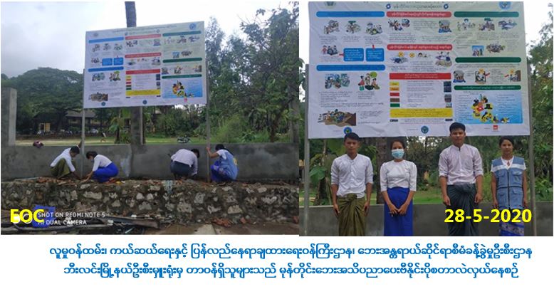 လူမှုဝန်ထမ်း၊ ကယ်ဆယ်ရေးနှင့် ပြန်လည်နေရာချထားရေးဝန်ကြီးဌာန၊ ဘေးအန္တရာယ်ဆိုင်ရာစီမံ ခန့်ခွဲမှုဦးစီးဌာန၊ မွန်ပြည်နယ်၊ သထုံခရိုင်၊ ဘီးလင်းမြို့နယ်ဦးစီးမှူးရုံးမှ တာဝန်ရှိသူများသည်(၂၈-၅-၂၀၂၀)ရက်နေ့တွင် ဘီးလင်းမြို့နယ်၊ ဘိုးရာဇာရပ်ကွက်၊ မြို့ပတ်လမ်း အ.ထ.က(၁)ကျောင်းရှေ့၌ စိုက်ထူထားသော မီးဘေးအသိပညာပေးဗီနိုင်းပိုစတာနေရာတွင် မုန်တိုင်းဘေးအသိပညာပေးဗီနိုင်း ပိုစတာအား လဲလှယ်ပြီးစီးခဲ့ပါကြောင်းသတင်းရရှိပါသည်။