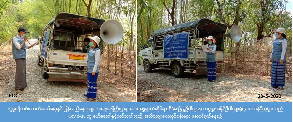 လူမှုဝန်ထမ်း၊ ကယ်ဆယ်ရေးနှင့် ပြန်လည်နေရာချထားရေးဝန်ကြီးဌာန၊ ဘေးအန္တရာယ်ဆိုင်ရာ စီမံ ခန့်ခွဲမှုဦးစီးဌာန၊ လပွတ္တာခရိုင်ဦးစီးမှူးရုံးမှ တာဝန်ရှိသူများသည် အထွေထွေအုပ်ချုပ်ရေးဦးစီးဌာနနှင့် အတူပူးပေါင်း၍ (၂၈-၅-၂၀၂၀) ရက်နေ့၊ (၀၈:၀၀) နာရီအချိန်မှ(၁၂:၀၀) နာရီအချိန်ထိ လပွတ္တာ မြို့နယ်၊ မင်းဘူးစုအုပ်စုအတွင်းရှိ သပြုကွင်းကျေးရွာ၊ ရွာသစ်ကျေးရွာ၊ ကေျာင်းစုကျေးရွာနှင့် ကေျာ်ရွာကျေးရွာ များတို့တွင် (Covid-19) အသက်ရှူလမ်းကြောင်းဆိုင်ရာရောဂါနှင့်ပတ်သက်၍ ကျန်းမာရေးနှင့် အားကစားဝန်ကြီးဌာနမှ ထုတ်ပြန်ထားသည့် အသိပေးကြေညာချက်များ၊ သဘာဝဘေးအန္တရာယ် ဆိုင်ရာအသိပညာပေးမှုများကို အများပြည်သူများသိရှိလိုက်နာရန်ကွင်းဆင်း၍ Loud Speaker ဖြင့် လှည့်လှည်၍ အသိပညာပေးလုပ်ဆောင်မှုများ ပြုလုပ်ဆောင်ရွက်ခဲ့ကြောင်း သိရှိရပါသည်။