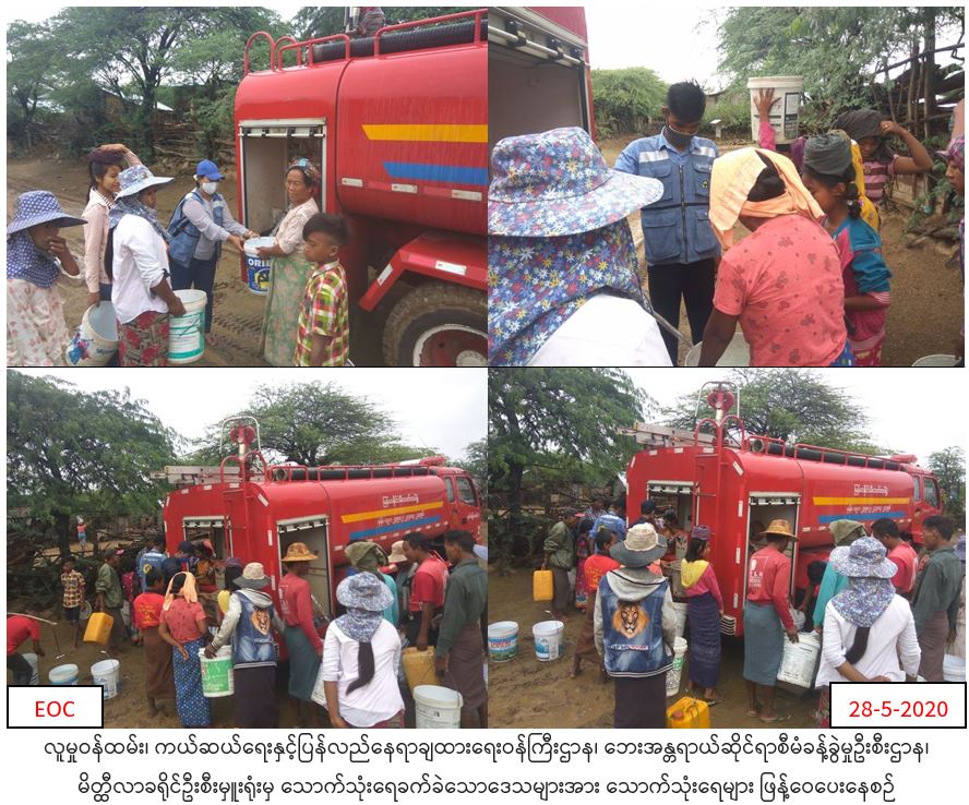 လူမှုဝန်ထမ်း၊ ကယ်ဆယ်ရေးနှင့်ပြန်လည်နေရာချထားရေးဝန်ကြီးဌာန၊ ဘေးအန္တရာယ်ဆိုင်ရာစီမံခန့်ခွဲမှုဦးစီးဌာန၊ မိတ္ထီလာခရိုင်ဦးစီးမှူးရုံးမှတာဝန်ရှိသူများသည် (၂၈-၅-၂၀၂၀)ရက်နေ့တွင် မိတ္ထီလာမြို့နယ်၊ ဇရပ်ကုန်းကျေးရွာအုပ်စု၊ ဆူးရစ်တန်းကျေးရွာတွင် သောက်သုံးရေရှားပါးမှုဖြစ်ပေါ်နေသဖြင့် သောက်သုံးရေဂါလန်(၁၇၀၀)ပါ ရေကားတစ်စီးဖြင့် ကျေးလက်ပြည်သူများအား သွားရောက်လှူဒါန်းထောက်ပံ့ပေးခဲ့ကြောင်း သတင်းရရှိပါသည်။