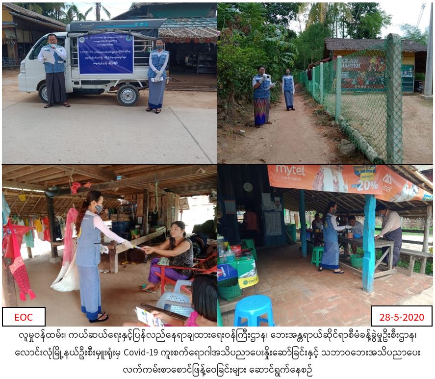 လူမှုဝန်ထမ်း၊ ကယ်ဆယ်ရေးနှင့်ပြန်လည်နေရာချထားရေးဝန်ကြီးဌာန၊ ဘေးအန္တရာယ်ဆိုင်ရာစီမံခန့်ခွဲမှုဦးစီးဌာန၊ လောင်းလုံမြို့နယ်ဦးစီးမှူးရုံးမှ တာဝန်ရှိသူများသည် (၂၈-၅-၂၀၂၀) ရက်နေ့တွင် လောင်းလုံးမြို့နယ်အတွင်းရှိ ပန်းတင်အင်းကျေးရွာနှင့် ငပိတက် ကျေးရွာတို့၌ COVID-19 ကူးစက်ရောဂါနှင့်ပတ်သက်သည့် သိရှိလိုက်နာဆောင်ရွက်ရမည့် ဆောင်ရန်ရှောင်ရန်အချက်များအား Hand Speaker၊ လော်စပီကာတို့ဖြင့် လှည့်လည်အသိပညာပေးခြင်း၊ Covid-19 အသိပညာပေး ဗီနိုင်းပိုစတာများကပ်ခြင်းနှင့် ရာသီဥတု ပြောင်းလဲခြင်းဆိုင်ရာ အသိပညာဗဟုသုတများ၊ သဘာဝဘေးအန္တရာယ်ဆိုင်ရာ ဆောင်ရန်၊ရှောင်ရန်အချက်များအား ကျေးရွာနေပြည်သူများထံ လှည့်လည်အသိပညာပေးခြင်း၊ သဘာဝဘေးဆိုင်ရာ လက်ကမ်းစာစောင်များ ဝေငှခြင်းတို့ ဆောင်ရွက်ခဲ့ကြောင်း သတင်းရရှိပါသည်။