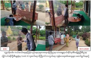 လူမှုဝန်ထမ်း၊ ကယ်ဆယ်ရေးနှင့်ပြန်လည်နေရာချထားရေးဝန်ကြီးဌာန၊ ဘေးအန္တရာယ်ဆိုင်ရာစီမံခန့်ခွဲမှုဦးစီးဌာန၊ လွိုင်လင်ခရိုင်ဦးစီးမှူးရုံးမှ (၃၀.၅.၂၀၂၀)ရက်နေ့ (၈း၀၀)နာရီမှ (၄း၀၀)အချိန်ထိ လွိုင်လင်မြို့၊ ပန်ခေါက်ဝိုးကျေးရွာ Covid-19စစ်ဆေးရေးဂိတ်၌ ကျိုင်းတုံ-တောင်ကြီး ပြည်ထောင်စုကားလမ်းမပေါရှိ ခရီးသွားပြည်သူများအား အသက်ရှူလမ်းကြောင်းဆိုင်ရာရောဂါ (COVID-19 )အသိပညာပေးခြင်း၊ ကိုယ်အပူချိန်တိုင်းတာခြင်း၊ ခရီးသွားရာဇဝင်မှတ်တမ်းယူခြင်းနှင့် လက်ကမ်းစာစောင်ဖြန့်ဝေခြင်းများ ဆောင်ရွက်ခဲ့ကြောင်း သတင်းရရှိပါသည်။