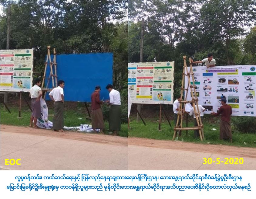 လူမှုဝန်ထမ်း၊ ကယ်ဆယ်ရေးနှင့် ပြန်လည်နေရာချထားရေးဝန်ကြီးဌာန၊ ဘေးအန္တရာယ်ဆိုင်ရာစီမံ ခန့်ခွဲမှုဦးစီးဌာန၊ မြောင်းမြခရိုင်ဦးစီးမှူးရုံးမှ တာဝန်ရှိသူများသည် (၃၀-၅-၂၀၂၀)ရက်နေ့တွင် မြောင်းမြမြို့နယ်၊ ရန်ကုန်-မြောင်းမြ-လပွတ္တာ အဝေးပြေးလမ်းမ၊ မီတာ(၄၀၀)ကားဝန်းအနီးတွင် မုန်တိုင်းဘေးအန္တရာယ်ဆိုင်ရာ အသိပညာပေးဆိုင်းဘုတ်နှင့် မိုးကြိုးဘေးအန္တရာယ်ဆိုင်ရာ အသိပညာပေးဆိုင်းဘုတ်အား လဲလှယ်ခဲ့ပါသည်။
