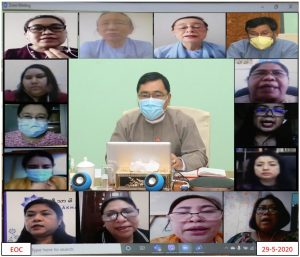 COVID-19 ကာလအတွင်း နေရပ်ပြန်နှင့်ကျေးလက်ဒေသနေ အမျိုးသမီးများအား ကူညီဆောင်ရွက်ပေးနိုင်ရေးကိစ္စများကို မြန်မာနိုင်ငံလုံးဆိုင်ရာ အမျိုးသမီးကော်မတီဥက္ကဌ၊ ပြည်ထောင်စုဝန်ကြီးဒေါက်တာဝင်းမြတ်အေးက အမျိုးသမီးအရေး တက်ကြွစွာဆောင်ရွက်ပေးနေကြသည့် ကော်မတီဝင်အမျိုးသမီးအဖွဲ့အစည်းများနှင့် ယနေ့မွန်းလွဲပိုင်းတွင် Video Conference ဖြင့် ညှိနှိုင်းဆွေးနွေးခဲ့ပါသည်။