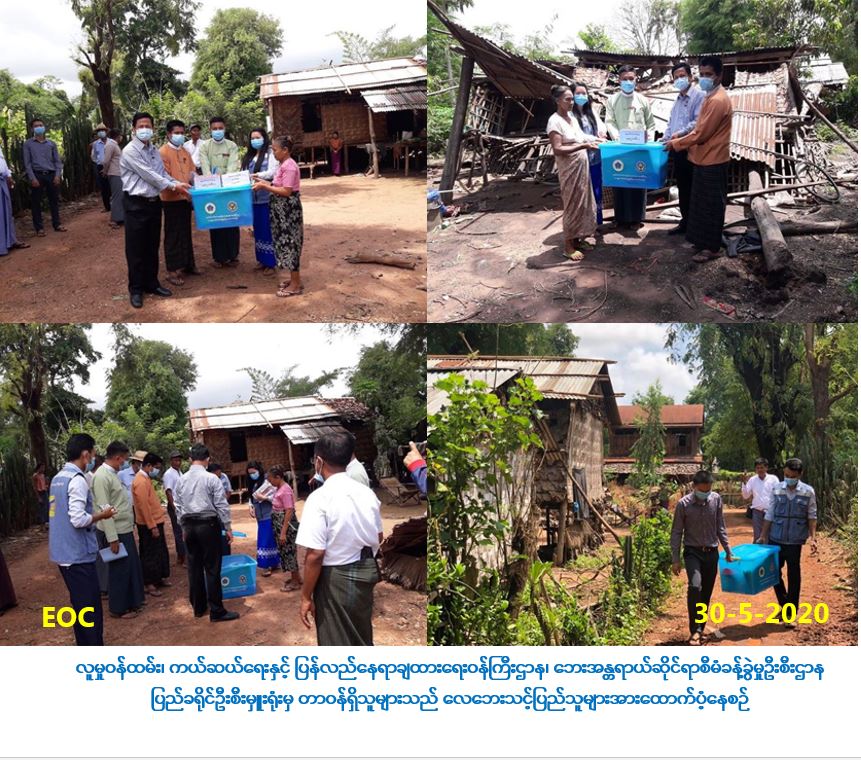 လူမှုဝန်ထမ်း၊ ကယ်ဆယ်ရေးနှင့် ပြန်လည်နေရာချထားရေးဝန်ကြီးဌာန၊ ဘေးအန္တရာယ်ဆိုင်ရာစီမံ ခန့်ခွဲမှုဦးစီးဌာန၊ ပြည်ခရိုင်ဦးစီးမှူးရုံးမှ တာဝန်ရှိသူများနှင့် ပဲခူးတိုင်းဒေသကြီးအစိုးရအဖွဲ့ စိုက်ပျိုးရေးနှင့်မွေးမြူရေးဝန်ကြီး၊ လဝကဝန်ကြီးနှင့် ဌာနဆိုင်ရာတာဝန်ရှိသူများသည် (၂၇/၂၈-၅-၂၀၂၀)ရက်နေ့တွင် ပြည်ခရိုင်၊ ပေါင်းတည်မြို့နယ်၌ ဖြစ်ပွားခဲ့သော လေပြင်းတိုက်ခတ်မှုခံစားခဲ့ ရသော ကျေးရွာအုပ်စု (၈) စုရှိ အမိုးလန်နေအိမ် (၉၆)လုံးနှင့် ပြိုလဲနေအိမ် (၄)လုံးရှိ အိမ်ထောင်စု (၁၀၀)အား အိမ်ဆောက်ပစ္စည်းဖိုးထောက်ပံ့ငွေ (၂,၉၂၉,၀၀၀/-) ကျပ် နှင့် လူဦးရေ (၁၁) ဦးအတွက် ဆန်ရိက္ခာဖိုးထောက်ပံ့ငွေ (၂၃,၁၀၀) ကျပ် စုစုပေါင်း ( ၂,၈၅၂,၁၀၀/-) ကျပ်နှင့် ပြိုလဲနေအိမ် (၄) လုံးအတွက် ကယ်ဆယ်ရေးပစ္စည်း (၁၆) မျိုးတို့အား (၃၀-၅-၂၀၂၀)ရက်နေ့ နေ့လယ် (၁၁:၀၀) နာရီအချိန်တွင် ဘေးသင့်ပြည်သူများလက်၀ယ်အရောက် သွားရောက် ထောက်ပံ့ခဲ့ကြောင်း သတင်း ရရှိပါသည်။