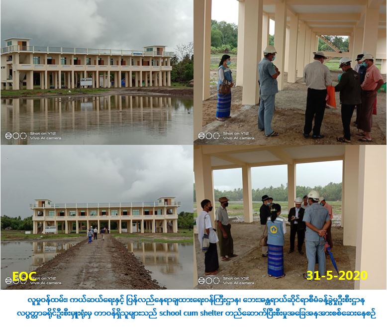 လူမှုဝန်ထမ်း၊ ကယ်ဆယ်ရေးနှင့် ပြန်လည်နေရာချထားရေးဝန်ကြီးဌာန၊ ဘေးအန္တရာယ်ဆိုင်ရာစီမံ ခန့်ခွဲမှုဦးစီးဌာန၊ လပွတ္တာခရိုင်ဦးစီးမှူးရုံးမှ တာဝန်ရှိသူများသည် မြို့နယ်ဆောက်လုပ်ရေး ကြီးကြပ်မှုကော်မတီအဖွဲ့နှင့်လွှတ်တော်ကိုယ်စားလှယ်ရုံးမှ တာဝန်ရှိသူများနှင့်အတူ(၃၁-၅-၂၀၂၀) ရက်နေ့၌ အမျိုးသားသဘာဝဘေး အန္တရာယ်ဆိုင်ရာစီမံခန့်ခွဲမှုကော်မတီ၏ ရန်ပုံငွေဖြစ်Excellent Unity ကုမ္ပဏီမှ တာဝန်ယူတည်ဆောက်လျက်ရှိသော လပွလပွတ္တာမြို့နယ်၊ ဆားချက်ကျေးရွာအုပ် စု၊ ဘိုသင်ကုန်းကျေးရွာမှ school cum shelter တည်ဆောက်မှု ၁၀၀% တည်ဆောက်ပြီးစီးမှု အခြေအနေအားသွားရောက်စစ်ဆေးခဲ့ကြောင်း သတင်းရရှိပါသည်။