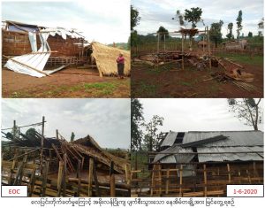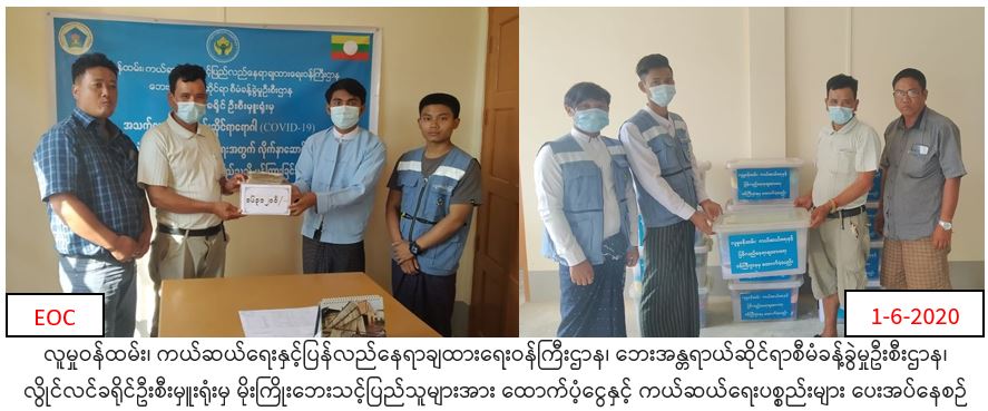 လူမှုဝန်ထမ်း၊ ကယ်ဆယ်ရေးနှင့်ပြန်လည်နေရာချထားရေးဝန်ကြီးဌာန၊ ဘေးအန္တရာယ်ဆိုင်ရာစီမ့ခန့်ခွဲမှုဦးစီးဌာ၊ လွိုင်လင်ခရိုင်ဦးစီးမှူးရုံးမှ (၃၀-၅-၂၀၂၀)ရက်နေ့ (၁၅း၀၀)နာရီအချိန်တွင် လွိုင်လင်ခရိုင်၊ ကျေးသီးမြို့နယ်၊ ဝမ်စိမ်းကျေးရွာအုပ်စု၊ လွယ်ဆိုင်ကျေးရွာတွင် မိုးသက်လေပြင်းကျ၍ မိုးကြိုးပစ်ပြီး မီးလောင်သွားသည့် လူနေအိမ်(၁)လုံး၊ ပြိုကျသွားသည့် လူနေအိမ်(၁၂)လုံး၊ အမိုးလန်သွားသည့် ဘာသာရေးကျောင်း/လူနေအိမ် (၃)လုံးအတွက် အိမ်ဆောက်ပစ္စည်းဖိုးထောက်ပံ့ငွေ(၁၄)သိန်း(၈)သောင်းကျပ်နှင့် လူဦးရေ(၇၂)ဦးအတွက် (၇)ရက်စာ ဆန်ရိက္ခာဖိုးထောက်ပံ့ငွေ (၁၅၁၂၀၀)ကျပ်၊ စုစုပေါင်း(၁၆၃၁၂၀၀/-) (တစ်ဆယ့်ခြောက်သိန်းသုံးသောင်းတစ်ထောင့်နှစ်ရာကျပ်တိတိ)နှင့် မီးလောင်/ပြိုကျနေအိမ်(၁၃)လုံးအတွက် (၁၇)မျိုးပါ ကယ်ဆယ်ရေးပစ္စည်း(၁၃)ပုံးတို့အား (၁.၆.၂၀၂၀)ရက်နေ့ (၃း၃၀)အချိန်တွင် ထောက်ပံ့ပေးအပ်ခဲ့ကြောင်း သတင်းရရှိပါသည်။