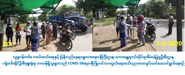 လူမှုဝန်ထမ်း၊ ကယ်ဆယ်ရေးနှင့် ပြန်လည်နေရာချထားရေးဝန်ကြီးဌာန၊ ဘေးအန္တရာယ်ဆိုင်ရာစီမံ ခန့်ခွဲမှုဦးစီးဌာန၊ ဂန့်ဂေါခရိုင်ဦးစီးမှူးရုံးမှ တာဝန်ရှိသူများသည်(၁-၆-၂၀၂၀)ရက်နေ့ (ဝ၈:၃၀) နာရီမှ (၁၇:၃၀) နာရီအချိန်ထိ မြို့နယ်အထွေထွေအုပ်ချုပ်ရေးဦးစီးဌာန၊ ဌာနဆိုင်ရာများမှ တာဝန်ရှိသူများဖြင့်ပူးပေါင်း၍ လတ်တလောနိုင်ငံအသီးသီးတွင် ကူးစက်ပြန့်ပွါးလျက်ရှိသည့် COVID-19 ရောဂါကြိုတင်ကာကွယ်ရေးအတွက် ဂန့်ဂေါခရိုင်အတွင်း ယာဉ်ဝင်/ထွက် အတွက် စီးနင်းလိုက်ပါလာသော ခရီးသည်များအား ကိုယ်အပူချိန်တိုင်းထွာပေးခြင်းနှင့် ပြည်တွင်း/ပမှ ပြန်လာသူများအား စာရင်းပြုစုခြင်းတို့ကို ဆောင်ရွက်ခဲ့ကြောင်း သတင်းရရှိပါသည်။
