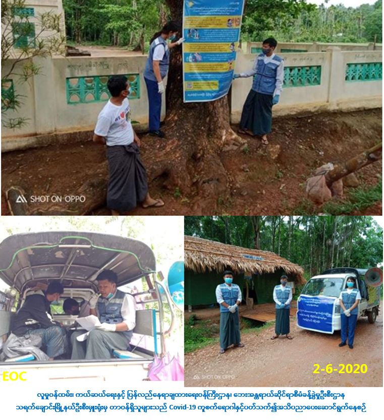လူမှုဝန်ထမ်း၊ ကယ်ဆယ်ရေးနှင့် ပြန်လည်နေရာချထားရေးဝန်ကြီးဌာန၊ ဘေးအန္တရာယ်ဆိုင်ရာစီမံ ခန့်ခွဲမှုဦးစီးဌာန၊ သရက်ချောင်းမြို့နယ်ဦးစီးမှူးရုံးမှ တာဝန်ရှိသူများသည် (၂-၆-၂၀၂၀) ရက်နေ့၌ သရက်ချောင်းမြို့နယ်အတွင်းရှိ ဝဲရစ်ကျေးရွာနှင့်ရငဲကျေးရွာတို့တွင် လော်စပီကာ၊Hand Speaker တို့ဖြင့် Covid-19 လတ်တရောဂါကြိုတင်ကာကွယ်ထိန်းချုပ်နိုင်ရန် အများပြည်သူသို့ အသိပညာပေး ပန်ကြားချက်များအား လှည့်လည်ကြေညာခြင်းများ ဆောင်ရွက်ခဲ့ကြောင်း သတင်းရရှိပါသည်။