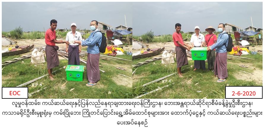 လူမှုဝန်ထမ်း၊ ကယ်ဆယ်ရေးနှင့်ပြန်လည်နေရာချထားရေးဝန်ကြီးဌာန၊ ဘေးအန္တရာယ်ဆိုင်ရာစီမံခန့်ခွဲမှုဦးစီးဌာန၊ ကသာခရိုင်ဦးစီးမှူးရုံးမှ (၁.၆.၂၀၂၀)နေ့တွင် ကသာမြို့နယ်၊ ပုလွှေရွှေကျေးရွာ၌ ဧရာဝတီမြစ်ရေတိုက်စားမှုကြောင့် ကမ်းပြိုပြောင်းရွှေ့အိမ်ထောင်စု(၂)စုအတွက် ကယ်ဆယ်ရေးပစ္စည်း(၁၀)မျိုး (၂)အိမ်ထောင်စာ၊ အိမ်ဆောက်ပစ္စည်းဖိုး(၂၀၀၀၀၀)နှင့် ဆန်ရိက္ခာဖိုးထောက်ပံ့ငွေ(၃၃၆၀၀)၊ စုစုပေါင်း(၂၃၃၆၀၀)တို့ကို (၂.၆.၂၀)နေ့ (၁၄း၀၀)နာရီအချိန်တွင် ဘေးသင့်ပြည်သူထံသို့ ထောက်ပံ့ပေးအပ်ခဲ့ကြောင်း သတင်းရရှိပါသည်။