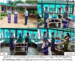 လူမှုဝန်ထမ်း၊ ကယ်ဆယ်ရေးနှင့်ပြန်လည်နေရာချထားရေးဝန်ကြီးဌာန၊ ဘေးအန္တရာယ်ဆိုင်ရာစီမံခန့်ခွဲမှုဦးစီးဌာန၊ မြိတ်ခရိုင်ဦးစီးမှူးရုံးမှ (၃.၆.၂၀၂၀)နေ့ မြိတ်မြို့နယ်၊ မြိတ်လေတပ်စခန်းဌာနချုပ်၌ ဖြစ်ပွားခဲ့သော မိုးကြိုးဘေးမှ သေဆုံးသူ(၅)ဦးအတွက် ထောက်ပံ့ငွေ (၁၅၀၀၀၀၀)ကျပ်၊ ဒဏ်ရာရသူ(၇)ဦးအတွက် ဆေးကုသစရိတ် (၃၅၀၀၀၀)ကျပ်အား (၄.၆.၂၀၂၀)နေ့ နံနက် (၁၁:၃၀)အချိန်တွင် ထောက်ပံ့ပေးအပ်ခဲ့ကြောင်း သတင်းရရှိပါသည်။