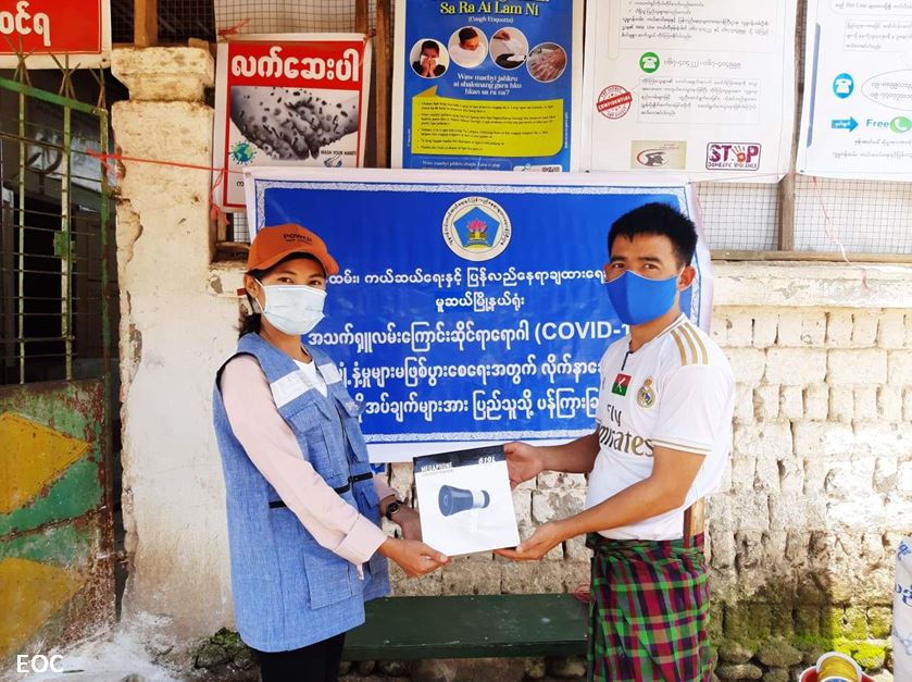 အလားတူ ရှမ်းပြည်နယ်၊ မူဆယ်မြို့နယ်ရှိ ဂျော်(၁)၊ နေဝန်းနီနှင့် စိန့်သောမတ် စုစုပေါင်း IDP စခန်း(၃)ခုသို့ သွားရောက်၍ Hand Speaker (၃)ခုနှင့် COVID-19 အသိပညာပေး အသံဖိုင်ထည့်သွင်းထားသော Memory Stick (၃)ခုတို့ကို သွားရောက်ထောက်ပံ့ခဲ့ပါသည်။