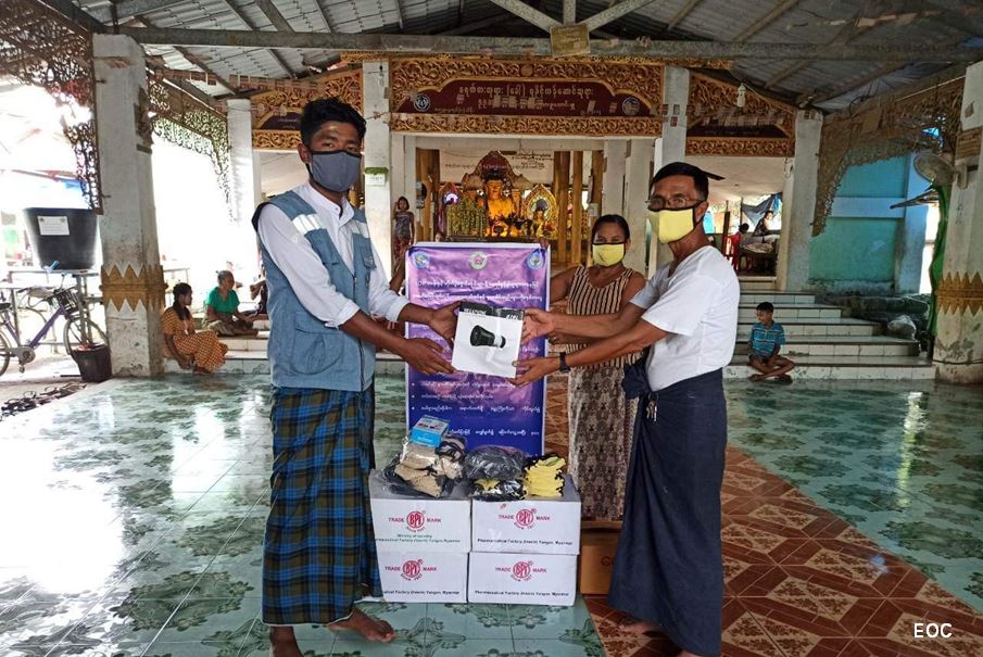 ယနေ့ (၅-၆-၂၀၂၀) ရက်နေ့တွင် ကချင်ပြည်နယ်၊ တနိုင်းမြို့နယ်ရှိ KBC နှင့် RC စုစုပေါင်းယာယီတိုက်ပွဲရှောင်စခန်း(၂)ခုသို့ သွားရောက်၍ လက်သန့်ဆေးရည်ဘူး(၄၀)၊ ထုံးအိတ်(၂၀)၊ ဆပ်ပြာ(၉၅၂)ခဲ၊ Surgical Mask (၁,၂၉၈)ခု၊ အပူချိန်တိုင်းကိရိယာ(၂)ခု၊ Hand Speaker (၂)ခု၊ ဗီနိုင်း(၂)ချပ်နှင့် COVID-19 အသိပညာပေးအသံဖိုင်ထည့်သွင်းထားသော Memory Stick (၂)ခုတို့အား သွားရောက်ထောက်ပံ့ခဲ့ပါသည်။