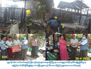 လူမှုဝန်ထမ်း၊ ကယ်ဆယ်ရေးနှင့် ပြန်လည်နေရာချထားရေးဝန်ကြီးဌာန၊ ဘေးအန္တရာယ်ဆိုင်ရာစီမံ ခန့်ခွဲမှုဦးစီးဌာန၊ နေပြည်တော်တိုင်းဦးစီးမှူးရုံးမှ တာဝန်ရှိသူများသည် (၉-၆-၂၀၂၀)ရက်နေ့၊ (၁၅း၃၀) နာရီအချိန်တွင် ပြည်ထောင်စုနယ်မြေ၊ နေပြည်တော်၊ ပျဉ်းမနားမြို့နယ်၊ ကင်ပွန်းတန်း ကျေးရွာအုပ်စု၊ သဲကျွန်းကျေးရွာ၌ ဖြစ်ပွားခဲ့သော မီးလောင်မှုကြာင့် ပျက်စီးဆုံးရှုံးခဲ့သည့် နေအိမ်(၂)လုံးအတွက် အိမ်ဆောက်ပစ္စည်းဖိုးထောက်ပံ့ငွေ (၃၀၀,၀၀၀ိ/-) ကျပ်၊ ဘေးသင့်လူဦးရေ (၇) ဦးအတွက် ဆန်ရိက္ခာဖိုးထောက်ပံ့ငွေ (၁၄,၇၀ဝိ/-) ကျပ်၊ စုစုပေါင်းထောက်ပံ့ငွေ( ၃၁၄,၇၀ဝိ/-) ကျပ်နှင့် ကယ်ဆယ်ရေးပစ္စည်း (၁၇)မျိုး (၂)အိမ်ထာင်စာတို့အား (၁၀-၆-၂၀၂၀)ရက်နေ့၊ (၁၀း၁၅) နာရီအချိန်တွင် ဘေးသင့်ပြည်သူများလက်ဝယ်သို့ သွားရောက်ထောက်ပံ့ခဲ့ကြောင်း သတင်းရရှိ ပါသည်။