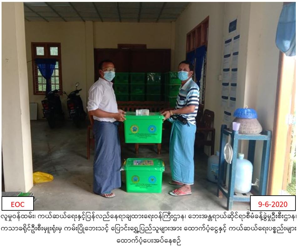 လူမှုဝန်ထမ်း၊ ကယ်ဆယ်ရေးနှင့်ပြန်လည်နေရာချထားရေးဝန်ကြီးဌာန၊ ဘေးအန္တရာယ်ဆိုင်ရာစီမံခန့်ခွဲမှုဦးစီးဌာန၊ ကသာခရိုင်ဦးစီးမှူးရုံးမှ (၆-၆-၂၀၂၀)ရက်နေ့တွင် ကသာမြို့နယ်၊ ပုလွှေရွှေကျေးရွာအုပ်စု၊ သစ်ဖြူကုန်းကျေးရွာနှင့် ရေလယ်ကျွန်းကျေးရွာတွင် ဧရာ၀တီမြစ်ရေတိုက်စားမှုကြောင့် ကမ်းပြိုမှုဖြစ်ပွားခဲ့ရာ ကြိုတင်ဖျက်သိမ်းပြောင်းရွှေ့ အိမ်ထောင်စု(၂)စုအတွက် ကယ်ဆယ်ရေးပစ္စည်း (၁၀)မျိုး (၂) အိမ်ထောင်စာ၊ အိမ်ဆောက်ပစ္စည်းဖိုး (၂၀၀၀၀၀)ကျပ် နှင့် လူဦးရေ (၉) ဦးအတွက် ဆန်ရိက္ခာဖိုးထောက်ပံ့ငွေ (၁၈၉၀၀)ကျပ်၊ စုစုပေါင်း (၂၁၈၉၀၀)ကျပ် တို့ကို (၉-၆-၂၀၂၀)ရက် (၁၆း၀၀)နာရီတွင် ထောက်ပံ့ပေးအပ်ခဲ့ကြောင်း သတင်းရရှိပါသည်။