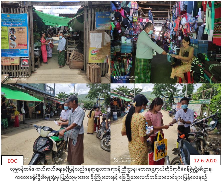 လူမှုဝန်ထမ်း၊ ကယ်ဆယ်ရေးနှင့်ပြန်လည်နေရာချထားရေးဝန်ကြီးဌာန၊ ဘေးအန္တရာယ်ဆိုင်ရာစီမံခန့်ခွဲမှုဦးစီးဌာန၊ ကလေးခရိုင်ဦးစီးမှူးရုံးမှ (၁၂.၆.၂၀၂၀)ရက်နေ့ (၁၂း၃၀)အချိန်တွင် ကလေးဝမြို့စျေးအတွင်း၌ မိုးကြိုးဘေးလက်ကမ်းစာစောင်နှင့် မြေပြိုဘေးလက်ကမ်းစာစောင်များကို ဖြန့်ဝေပေးခဲ့ကြောင်း သတင်းရရှိပါသည်။