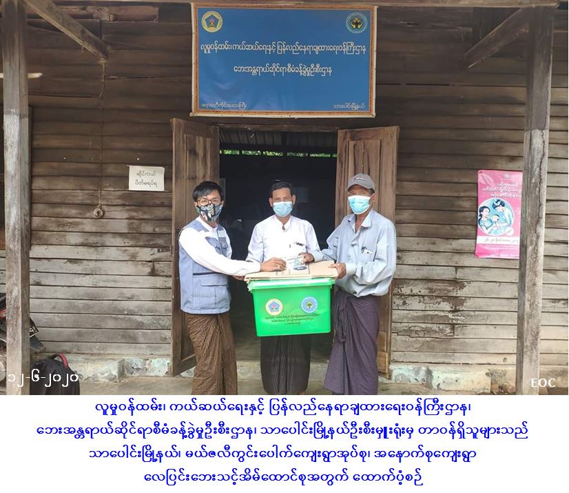 လူမှုဝန်ထမ်း၊ ကယ်ဆယ်ရေးနှင့် ပြန်လည်နေရာချထားရေးဝန်ကြီးဌာန၊ ဘေးအန္တရာယ်ဆိုင်ရာစီမံခန့်ခွဲမှုဦးစီးဌာန၊ သာပေါင်းမြို့နယ်ဦးစီးမှူးရုံးမှ တာဝန်ရှိသူများသည် သာပေါင်းမြို့နယ်၊ မယ်ဇလီကွင်းပေါက်ကျေးရွာအုပ်စု၊ အနောက်စုကျေးရွာ၌ (၁၁-၆-၂၀၂၀) ရက်နေ့တွင် ဖြစ်ပွားခဲ့သော လေဘေးကြောင့် ပြိုကျပျက်စီးနေအိမ်(၁)လုံးအတွက် အိမ်ဆောက်ပစ္စည်းဖိုး (၁၀၀၀၀ဝိ/)၊ လူဦးရေ(၃)ဦးအတွက် ဆန်ရိက္ခာ(၇)ရက်စာရန်ပုံငွေ (၆၃၀ဝိ/-)၊ စုစုပေါင်းရန်ပုံငွေ(၁၀၆၃၀ဝိ/-)နှင့် ကယ်ဆယ်ရေးပစ္စည်း(၁၆)မျိုး (၁) အိမ်ထောင်စာအား (၁၂-၆-၂၀၂၀) ရက်နေ့၊ (၁၂:၀၀) နာရီအချိန်တွင် ကျေးရွာအုပ်ချုပ်ရေးမှူးနှင့်တကွ တာဝန်ရှိသူများ၏ရှေ့မှောက်၌ ဘေးသင့်ပြည်သူများ၏လက်ဝယ်သို့ ထောက်ပံ့ပေးအပ်ပြီးဖြစ်ကြောင်း သတင်းရရှိပါသည်။