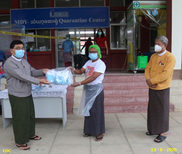 မွန်းလွဲပိုင်းတွင် ပြည်ထောင်စုဝန်ကြီးနှင့်အဖွဲ့သည် မန္တလေးတိုင်းဒေသကြီး၊ မန္တလေးဇီဝိတဒါန သံဃာ့ဆေးရုံတွင် Quarantine Center အဖြစ်ဖွင့်လှစ်ထားသည့်နေရာသို့ ရောက်ရှိခဲ့ကြပြီး ကူညီ ဆောင်ရွက်ပေးကြသည့် စေတနာ့ဝန်ထမ်းများနှင့် ပရဟိတအဖွဲ့အစည်းများအတွက် အသိအမှတ်ပြု ဂုဏ်ပြုလွှာများကို မန္တလေးတိုင်းဒေသကြီးအစိုးရအဖွဲ့ လူမှုရေးဝန်ကြီးထံသို့ပေးအပ်ခြင်း၊ စေတနာ့ ဝန်ထမ်း ရင်ထိုးတံဆိပ်များ၊ ပါးစပ်နှင့်နှာခေါင်းစည်းများ၊ လက်သန့်ဆေးရည်များကို စေတနာ့ဝန်ထမ်း ကိုယ်စားလှယ်တို့ထံပေးအပ်ခြင်းများကိုဆောင်ရွက်ခဲ့ကြပါသည်။