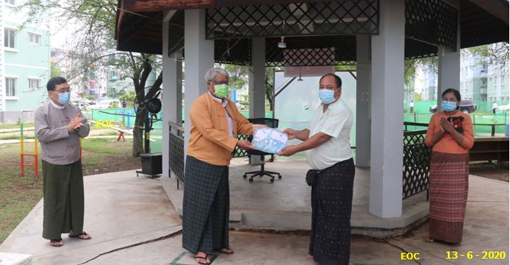 ယင်းနောက် လူမှုဝန်ထမ်း၊ ကယ်ဆယ်ရေးနှင့်ပြန်လည်နေရာချထားရေးဝန်ကြီးဌာနက အဆိုပါ အသွားအလာကန့်သတ်ခြင်းနေရာတွင်ရှိသော ကိုယ်ဝန်ဆောင်မိခင် (၇၂) ဦး၊ အသက်(၅) နှစ်အောက် ကလေး (၇၆)ဦးနှင့် အသက်(၆၀)နှစ်အထက် သက်ကြီးရွယ်အို (၁၆)ဦးတို့အတွက် တစ်ဦးလျှင် ငွေကျပ် (၃) သောင်းနှုန်းဖြင့် ထောက်ပံ့သည့်စုစုပေါင်းငွေကျပ် (၄,၉၂၀,၀၀ဝိ/-) (လေးဆယ့်ကိုးသိန်းနှစ်သောင်း တိတိ) ကို လူမှုဝန်ထမ်းဦးစီးဌာနညွှန်ကြားရေးမှူးချုပ်ကစခန်းတာဝန်ခံတစ်ဦးထံသို့ပေးအပ်ခဲ့ပါသည်။