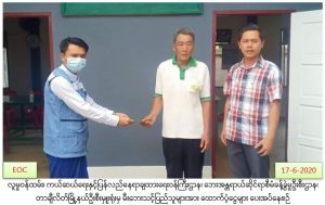 လူမှုဝန်ထမ်း၊ ကယ်ဆယ်ရေးနှင့် ပြန်လည်နေရာချထားရေးဝန်ကြီးဌာန၊ ဘေးအန္တရာယ်ဆိုင်ရာစီမံခန့်ခွဲမှုဦးစီးဌာန၊ တာချီလိတ်မြို့နယ်ဦးစီးမှူးရုံးမှ တာဝန်ရှိသူများသည် (၁၅-၆-၂၀၂၀) ရက်နေ့နံနက်(၁၁:၂ဝ)အချိန်တွင် တာချီလိတ်မြို့၊ မိုင်းကိုးကျေးရွာအုပ်စု၊ ဝမ်ကောင်း(၂)ကျေးရွာ၌မီးလောင်မှုဖြစ်ပွားခဲ့ရာ လောင်ကျွမ်းပျက်စီးခဲ့သည့် အိမ်ခြေ(၁)လုံး(တစ်စိတ်တစ်ပိုင်း)အတွက် အိမ်ဆောက်ပစ္စည်းဖိုးငွေကျပ်(၁၅၀၀ဝိ/-)၊ ဘေးသင့်လူဦးရေ(၄)ဦးအတွက် ဆန်ရိက္ခာဖိုး(၇)ရက်စာကျပ်(၈၄၀ဝိ/-)၊ စုစုပေါင်းထောက်ပံငွေကျပ်(၂၃၄ဝဝ)အား (၁၇-၆-၂၀၂၀) ရက်နေ့၊ နံနက်(၁၁:ဝဝ)အချိန်တွင် မိုင်းကိုးကျေးရွာအုပ်ချုပ်ရေးမှူးရုံး၌ ဘေးသင့်ပြည်သူထံသို့ ထောက်ပံ့ပေးအပ်ခဲ့ကြောင်း သတင်းရရှိပါသည်။