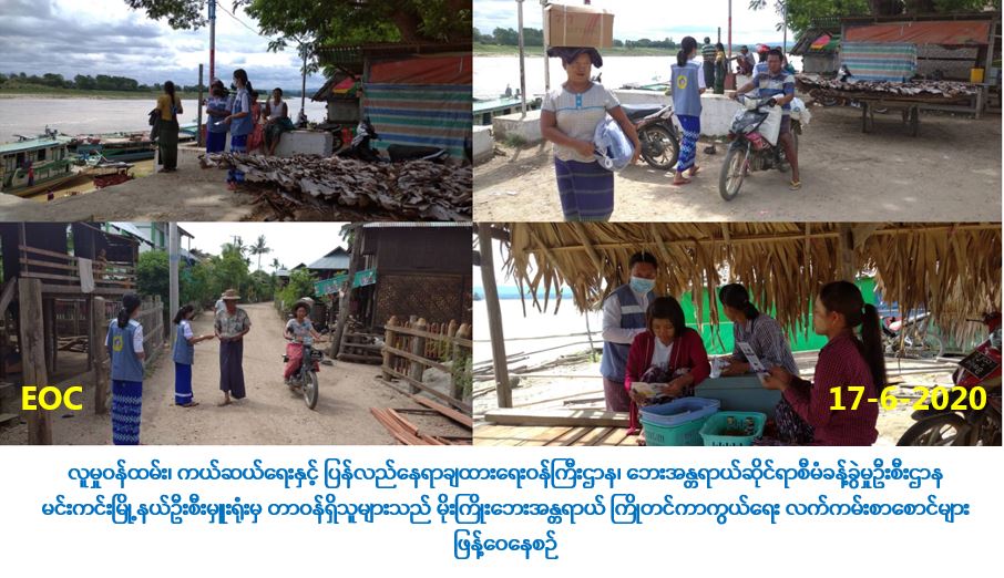 လူမှုဝန်ထမ်း၊ ကယ်ဆယ်ရေးနှင့် ပြန်လည်နေရာချထားရေးဝန်ကြီးဌာန၊ ဘေးအန္တရာယ်ဆိုင်ရာစီမံ ခန့်ခွဲမှုဦးစီးဌာန၊ မင်းကင်းမြို့နယ်ဦးစီးမှူးရုံးမှ (၁၇-၆-၂၀၂၀) ရက်နေ့တွင် မင်းကင်းမြို့နယ်၊ ကံကျေးရွာ၊ တောင်ယာတောကျေးရွာ၊ ကျေးတောင်ဦးကျေးရွာနှင့် အမြန်ရေယာဉ်ဂိတ်တို့၌ လျှပ်စီးလက်ခြင်းနှင့် မိုးကြိုးဘေးအန္တရာယ် ကြိုတင်ကာကွယ်ရေး လက်ကမ်းစာစောင်များ ဖြန့်ဝေခြင်းလုပ်ငန်းများ ဆောင်ရွက်ခဲ့ကြောင်း သတင်းရရှိပါသည်။