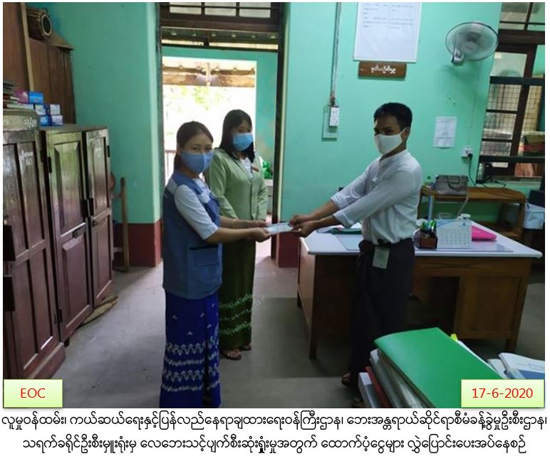 လူမှုဝန်ထမ်း၊ ကယ်ဆယ်ရေးနှင့်ပြန်လည်နေရာချထားရေးဝန်ကြီးဌာန၊ ဘေးအန္တရာယ်ဆိုင်ရာစီမံခန့်ခွဲမှုဦးစီးဌာန၊ သရက်ခရိုင်ဦးစီးမှူးရုံးမှ တာဝန်ရှိသူများသည် သရက်ခရိုင်၊ သရက်မြို့နယ်၊ကျဦးကျေးရွာအုပ်စု၊ ကျဦးကျေးရွာတွင် (၁၇-၆-၂၀၂၀)ရက် နေ့၌ မိုးရွာသွန်းပြီးလေပြင်းတိုက်ခတ်မှုကြောင့် ဘုန်းတော်ကြီးကျောင်း(၁)ကျောင်း၏ ခေါင်မိုးတစ်စိတ်တစ်ပိုင်းပျက်စီးခဲ့ရာ အဆိုပါလေဘေးသင့် ဘုန်းတော်ကြီးကျောင်း(၁)ကျောင်းအတွက် ကျောင်းဆောက်ပစ္စည်းဖိုးငွေ(၇၀၀၀ဝိ/-)အား (၁၇.၆.၂၀၂၀)ရက်နေ့၊ နေ့လည်(၃:၀၀)နာရီအချိန်တွင် သရက်မြို့နယ်၊ အထွေထွေအုပ်ချုပ်ရေးဦးစီးဌာနမှ တာဝန်ရှိသူများနှင့်အတူ သက်ဆိုင်ရာ ကျေးရွာအုပ်ချုပ်ရေးမှူးထံသို့ လွှဲပြောင်းထောက်ပံပေးအပ်ခဲ့ကြောင်း သတင်းရရှိပါသည်။
