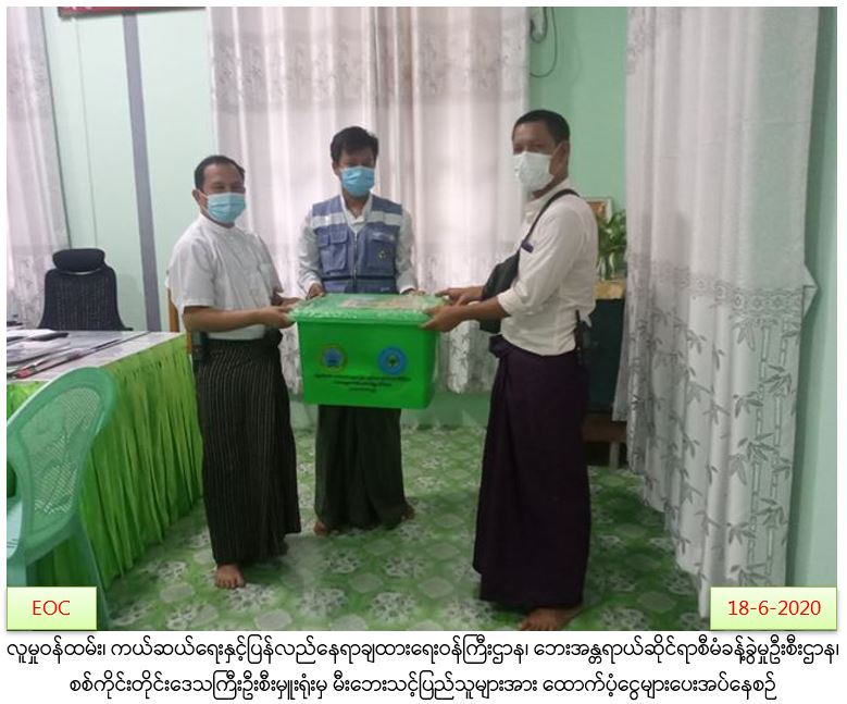 လူမှုဝန်ထမ်း၊ ကယ်ဆယ်ရေးနှင့်ပြန်လည်နေရာချထားရေးဝန်ကြီးဌာန၊ ဘေးအန္တရာယ်ဆိုင်ရာစီမံခန့်ခွဲမှုဦးစီးဌာန၊ စစ်ကိုင်းတိုင်းဒေသကြီးဦးစီးမှူးရုံးမှ (၁၇-၆-၂၀၂၀)ရက်နေ့တွင် မီးလောင်မှုကြောင့် မုံရွာခရိုင်၊ အရာတော်မြို့နယ်၊ လှည်းချောင်းကူးကျေးရွာမှ ပျက်စီးဆုံးရှုံးခဲ့သော အိမ်ခြေ(၂)လုံး၊ အိမ်ထောင်စု(၂)စုမှ လူဦးရေ(၄)ဦးအတွက် ဆန်ရိက္ခာဖိုး(၈၄၀၀)ကျပ်၊ အိမ်ဆောက်ပစ္စည်းဖိုး (၂၀၀၀၀၀)ကျပ်၊ စုစုပေါင်း (၂၀၈၄၀၀)ကျပ်နှင့် ကယ်ဆယ်ရေးပစ္စည်း (၁၇)မျိုး (၂)အိမ်ထောင်စာတို့အား (၁၈-၆-၂၀၂၀) ရက်နေ့တွင် အရာတော်မြို့နယ်အထွေထွေအုပ်ချုပ်ရေးမှူးရုံး၊ မြို့နယ်အုပ်အုပ်ရေးမှူးဦးသိုက်ထွန်းနှင့်အတူ ထောက်ပံ့ပေးအပ်ခဲ့ကြောင်း သတင်းရရှိပါသည်။