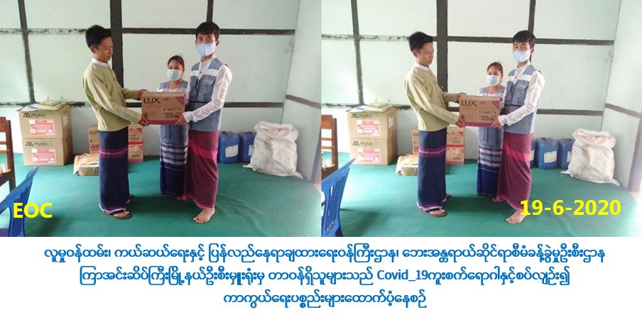 လူမှုဝန်ထမ်း၊ ကယ်ဆယ်ရေးနှင့် ပြန်လည်နေရာချထားရေးဝန်ကြီးဌာန၊ ဘေးအန္တရာယ်ဆိုင်ရာစီမံ ခန့်ခွဲမှုဦးစီးဌာန၊ ကြာအင်းဆိပ်ကြီးမြို့နယ်ဦးစီးမှူးရုံးမှ တာဝန်ရှိသူများသည် (၁၉-၆-၂၀၂၀) ရက်နေ့ တွင်ကြာအင်းဆိပ်ကြီးမြို့နယ်အတွင်းရှိ Quarantine Centerစခန်းများနှင့် ကျိုက်ဒုံမြို့နယ်ရှိ Quarantine Center စခန်းသို့ ဦးစီးဌာနမှ ထောက်ပံ့ပေးသော lux Soap (၇၀၀)တုံးအား ထောက်ပံ့ ပေးအပ်ခဲ့ကြောင်း သတင်းရရှိပါသည်။