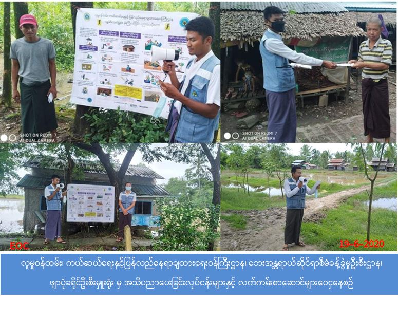 လူမှုဝန်ထမ်း၊ ကယ်ဆယ်ရေးနှင့် ပြန်လည်နေရာချထားရေးဝန်ကြီးဌာန၊ ဘေးအန္တရာယ်ဆိုင်ရာ စီမံခန့်ခွဲမှုဦးစီးဌာန၊ ဖျာပုံခရိုင်ဦးစီးမှူးရုံးမှ တာဝန်ရှိသူများသည် (၁၉-၆-၂၀၂၀) ရက်နေ့ နံနက် (၉:၃၀) နာရီအချိန်မှ ညနေ(၁၅:၃၀) နာရီအချိန်ထိ မိုးကြိုကာလနှင့် မိုးနှောင်းကာလတွင်ဖြစ်ပေါ်လေ့ရှိသော မိုးကြိုးပစ်ခြင်း၊ လျှပ်စီးလက်ခြင်းနှင့် ပတ်သက်၍ အသိပညာပေးလုပ်ငန်းများ၊ သိရှိလိုက်နာ ဆောင်ရွက်ရမည့်အချက်များနှင့် ပတ်သက်၍ အသိပညာပေးခြင်းကို ဖျာပုံမြို့နယ်၊ ကြက်ဖမွှေးဇောင်းကျေးရွာအုပ်စု၊ ကြက်ဖမွှေးဇောင်းကျေးရွာ၊ အဇုတ်ကြီးကျေးရွာ၊ တမံကြိုးကျေးရွာ၊ ကန္ဓီကျေးရွာရှိ ပြည်သူများသို့ ထိရောက်စွာ လိုက်လံအသိပေးဆောင်ရွက်ခဲ့ ပါကြောင်း သတင်းရရှိပါသည်။