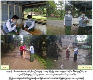 လူမှုဝန်ထမ်း၊ ကယ်ဆယ်ရေးနှင့်ပြန်လည်နေရာချထားရေးဝန်ကြီးဌာန၊ ဘေးအန္တရာယ်ဆိုင်ရာစီမံခန့်ခွဲမှုဦးဌာန၊ တမူးခရိုင်ဦးစီးမှူးရုံးမှ (၂၂-၆-၂၀၂၀)ရက်နေ့ (၁၁း၀၀)အချိန်မှ (၁၆း၀၀)အချိန်ထိ တမူးမြို့နယ် ထန်းတပင်ကျေးရွာ၊ မန်မော်ကျေးရွာ၊ ရန်ငြိမ်းအောင်ကျေးရွာ၊ ပန်းသာကျေးရွာ၊ နန်းမွန်းတားကျေးရွာ၊ ခွန်မွန်းနွံကျေးရွာ၊ ဝိတုပ်ကျေးရွာ၊ ဘုတ်ကံကျေးရွာတို့တွင် Covid-19 ရောဂါနှင့်ပတ်သက်၍ လိုက်နာဆောင်ရွက်ရန်အချက်များနှင့် မိုးကြိုးဘေးအန္တရာယ်ဆိုင်ရာအသိပေးနှိုးဆော်ချက်များအား အသိပညာပေးဆောင်ရွက်ခြင်းနှင့် လက်ကမ်းစာစောင်များဖြန့်ဝေပေးခဲ့ကြောင်း သတင်းရရှိပါသည်။