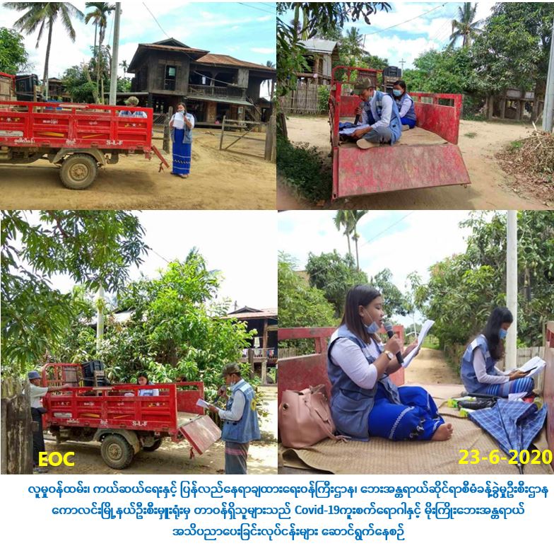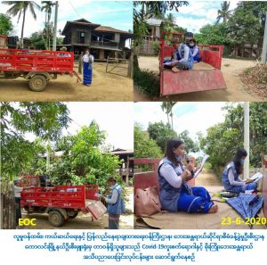 လူမှုဝန်ထမ်း၊ ကယ်ဆယ်ရေးနှင့် ပြန်လည်နေရာချထားရေးဝန်ကြီးဌာန၊ ဘေးအန္တရာယ် ဆိုင်ရာစီမံခန့်ခွဲမှုဦးစီးဌာန၊ ကောလင်းမြို့နယ်ဦးစီးမှူးရုံးမှ တာဝန်ရှိသူများးသည်(၂၃-၆-၂၀၂၀)ရက်နေ့တွင် ကောလင်းမြို့နယ်၊ ပဒုမ္မာကျေးရွာ၊ ကိုင်းကြီးကုန်းကျေးရွာ၊ ကျွန်းတော့ကျေးရွာ၊ တောင်အင်းလေးကျေးရွာ၊ ဝေကျးရွာသို့ Covid-19ရောဂါနှင့် မိုးကြိုးဘေး၊ ရေဘေးတို့နှင့်ပတ်သတ်၍ ဆောင်ရန်/ရှောင်ရန်များအား အသိပညာပေး နှိုးဆော်ပေးခဲ့ကြောင်း သတင်းရရှိပါသည်။