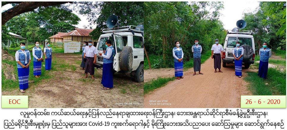 လူမှုဝန်ထမ်း၊ ကယ်ဆယ်ရေးနှင့်ပြန်လည်နေရာချထားရေးဝန်ကြီးဌာန၊ ဘေးအန္တရာယ်ဆိုင်ရာစီမံခန့်ခွဲမှုဦးစီးဌာန၊ ပြည်ခရိုင်ဦးစီးမှူးရုံးမှ တာဝန်ရှိသူများသည် (၂၆-၆-၂၀၂၀) ရက်နေ့တွင် ပြည်ခရိုင်၊ သဲကုန်းမြို့နယ် ပိတ်ချင်းကုန်းကျေးရွာ၊ ကန့်လန့်ကုန်ကျေးရွာ၊ ထန်းပင်ကုန်းကျေးရွာ၊ လိပ်ပြာသိန်းသောင်းကျေးရွာ၊ သရက်ကုန်းကျေးရွာ၊ ရွာထောင်ကုန်းကျေးရွာ၊ အုတ်ဆွဲကျေးရွာ၊ ရွာမကျေးရွာ၊ ပင်စည်ကုန်းကျေးရွာ၊ ပွေးယားကျေးရွာနှင့် တံတိုင်းလှကျေးရွာတို့အတွင်း ပြည်သူများအား COVID-19 ကူးစက်ရောဂါ အသိပညာပေးခြင်းနှင့် မိုးကြိုးဘေးအန္တရာယ်အသိပညာပေးခြင်းများ ဆောင်ရွက်ခဲ့ကြောင်း သတင်းရရှိပါသည်။