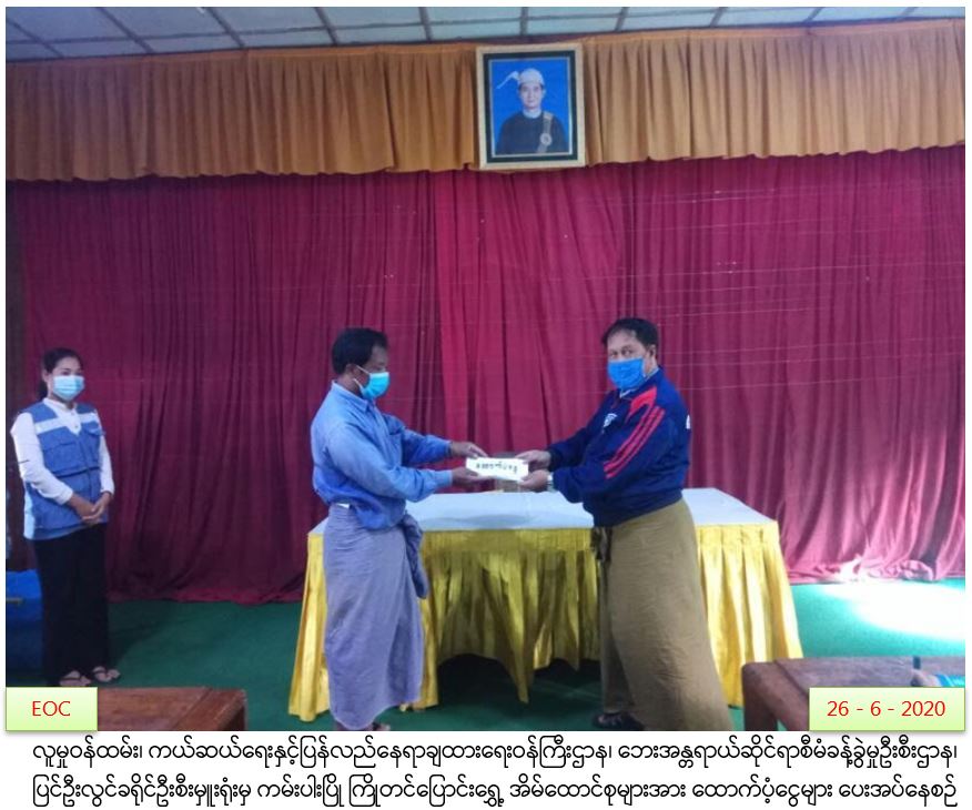 လူမှုဝန်ထမ်း၊ ကယ်ဆယ်ရေးနှင့်ပြန်လည်နေရာချထားရေးဝန်ကြီးဌာန၊ ဘေးအန္တရာယ် ဆိုင်ရာစီမံခန့်ခွဲမှုဦးစီးဌာန၊ ပြင်ဦးလွင်ခရိုင်ဦးစီးမှူးရုံးမှတာဝန်ရှိသူများသည် (၂၆-၆-၂၀၂၀)နေ့တွင် မိုးကုတ်မြို့သို့သွားရောက်၍ နေအိမ်ပျက်စီးမှုများနှင့် ဒဏ်ရာရရှိသူများအတွက် ဆန်ရိက္ခာဖိုး၊ အိမ်ဆောက်ပစ္စည်းဖိုး၊ ဒဏ်ရာရထောက်ပံ့ခြင်းများအတွက် စုစုပေါင်း(၉၂၂၄၀၀/-)ကို သွားရောက် ထောက်ပံ့ပေးခဲ့ပြီး တာဝန်ရှိသူများနှင့်ပူးပေါင်းကာ လိုအပ်သည်များ ဆောင်ရွက်ခဲ့ပါသည်။