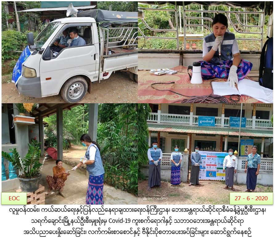 လူမှုဝန်ထမ်း၊ ကယ်ဆယ်ရေးနှင့်ပြန်လည်နေရာချထားရေးဝန်ကြီးဌာန၊ ဘေးအန္တရာယ်ဆိုင်ရာစီမံခန့်ခွဲမှုဦးစီးဌာန၊ သရက်ချောင်းမြို့နယ်ဦးစီးမှူးရုံးမှ တာဝန်ရှိသူများသည် (၂၇.၆.၂၀၂၀)ရက်နေ့၌ သရက်ချောင်းမြို့နယ်အတွင်းရှိ ကင်းရှေ့ကျေးရွာနှင့် ဆေးဖြတ်ကုန်းကျေးရွာရှိ ပြည်သူများအား Covid-19 ကူးစက်ရောဂါနှင့်ပက်သက်၍ လိုက်နာဆောင်ရွက်ရမည့်အချက်များနှင့် မိုးရာသီကာလသို့ရောက်ရှိလာပြီဖြစ်သည့်အတွက် ရေဘေး၊ မြေပြိုဘေးနှင့် မိုးကြိုးဘေးစသည့် သဘာဝဘေးအန္တရာယ်နှင့်ပက်သက်သော ဆောင်ရန်/ရှောင်ရန်အချက်များအား အသိပညာပေးပန်ကြားခြင်း၊ လက်ကမ်းစာစောင်နှင့် ဗီနိုင်းပိုစတာများ ဖြန့်ဝေခြင်းများ ဆောင်ရွက်ခဲ့ကြောင်း သတင်းရရှိပါသည်။