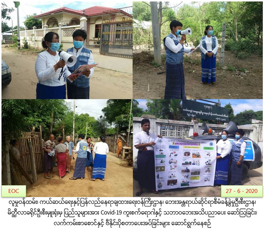 လူမှုဝန်ထမ်း၊ ကယ်ဆယ်ရေးနှင့်ပြန်လည်နေရာချထားရေးဝန်ကြီးဌာန၊ ဘေးအန္တရာယ်ဆိုင်ရာစီမံခန့်ခွဲမှုဦးစီးဌာန၊ မိတ္ထီလာခရိုင်ဦးစီးမှူးရုံးမှရုံးမှ တာဝန်ရှိသူများသည် ရှမ်းတဲမေတ္တာပရဟိတအဖွဲ့နှင့်ပူးပေါင်း၍ (၂၇-၆-၂၀၂၀)ရက်နေ့ တွင် မိတ္ထီလာမြို့နယ်၊ ရေချိုကျေးရွာအုပ်စု၊ အရာတော်ကျေးရွာအုပ်စု၊ သမင်လျှိုကျေးရွာအုပ်စုရှိကျေးရွာ( ၂၂)ရွာသို့ Covid19 ရောဂါကာကွယ်ရေးအသိပညာပေးခြင်းနှင့် သဘာဘေးအန္တရာယ်အသိပညာပေးခြင်းများ ဆောင်ရွက်ခဲ့ကြောင်း သတင်းရရှိပါသည်။